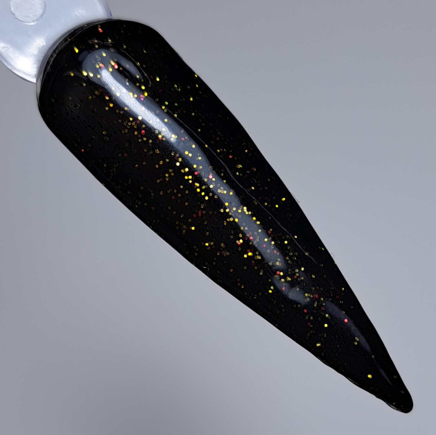 Jet black base with gold/red glitter